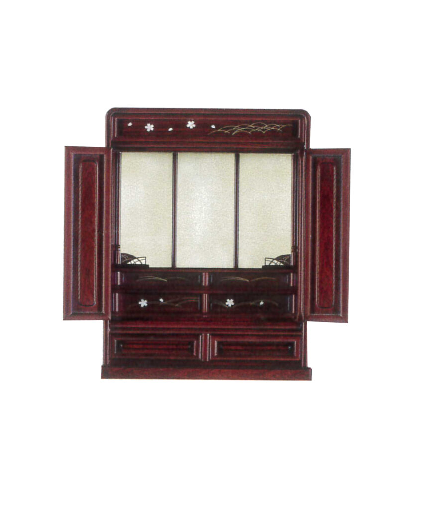 桜の貝象嵌が入ったお仏壇です。紫檀のお手頃なお仏壇です。